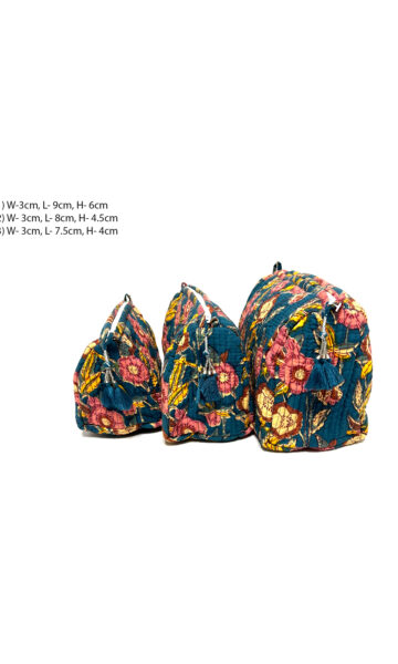 cotton quilted pouch with block print (set of 3)